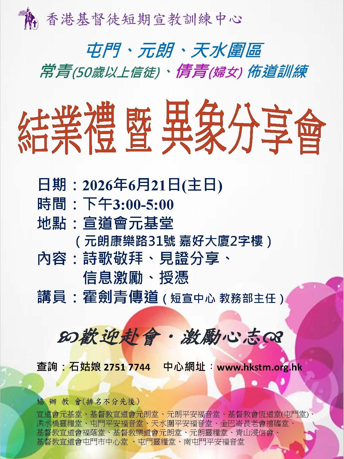 一年尊青(部分時間短宣)佈道訓練:適合退休、彈性上班的信徒及教會幹事。