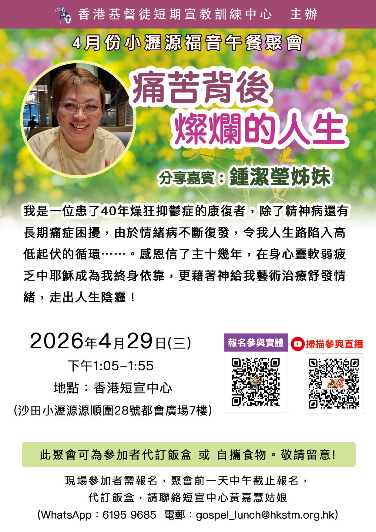 「常青佈道訓練課程」是專為50歲或以上的信徒而設,深願信徒也能為主善用黃金歲月,傳揚福音,使更多人得著「真福氣」。